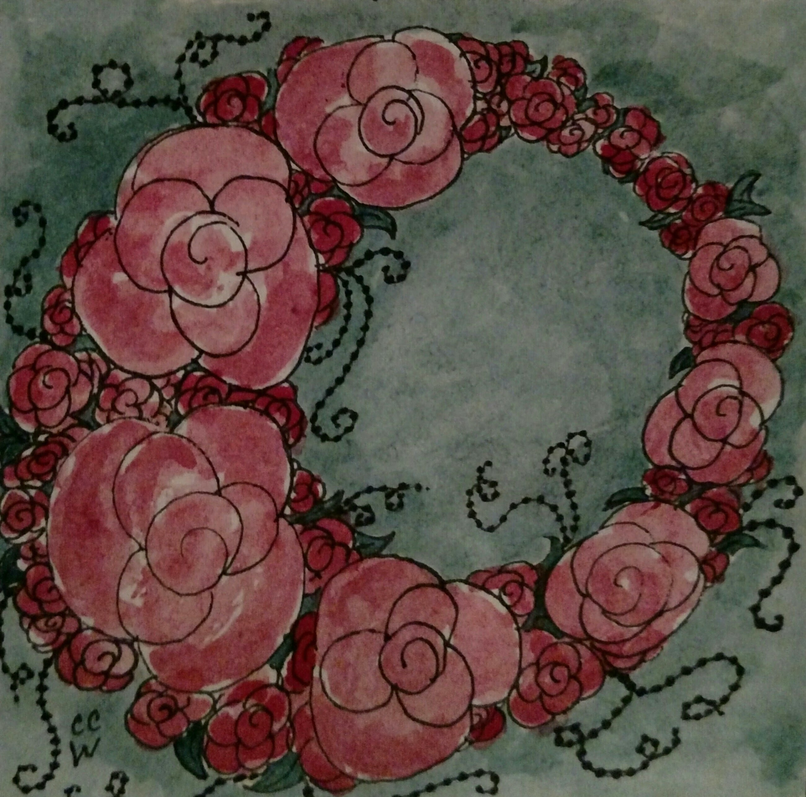 Wreath zentangle by CC Willow. Featuring Pozer in ink & watercolor.