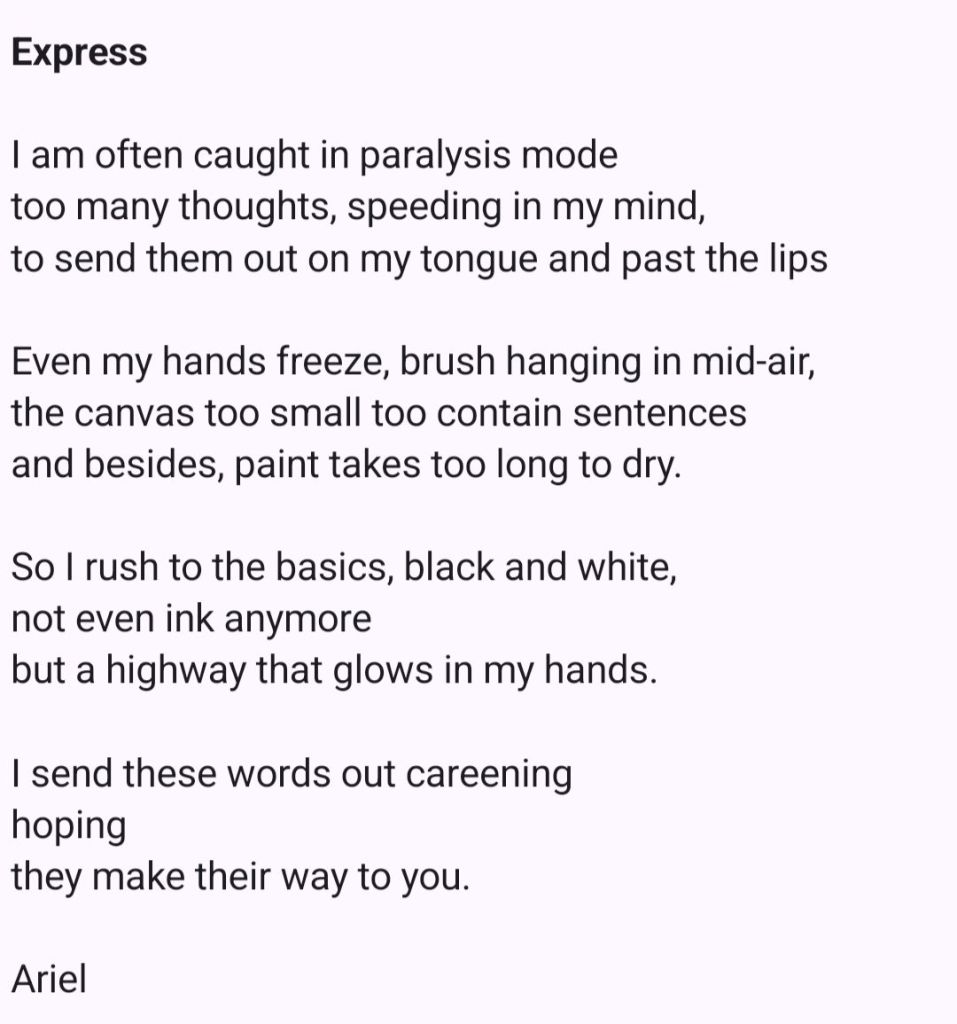 Do keep in mind that the poems I post here in my blog are drafts. I haven’t revised or refined them yet (That is May’s work.)