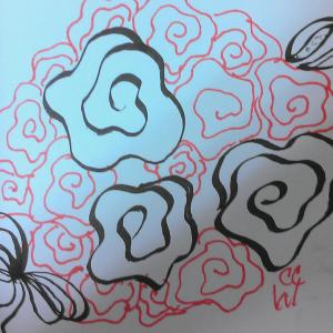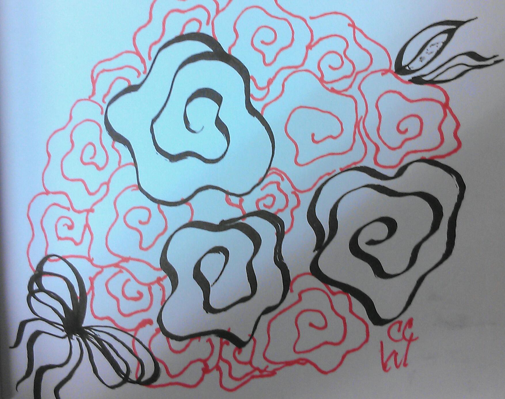 20140609 20 Zentangle 143 pigma ink copic ink on paper red black WB
