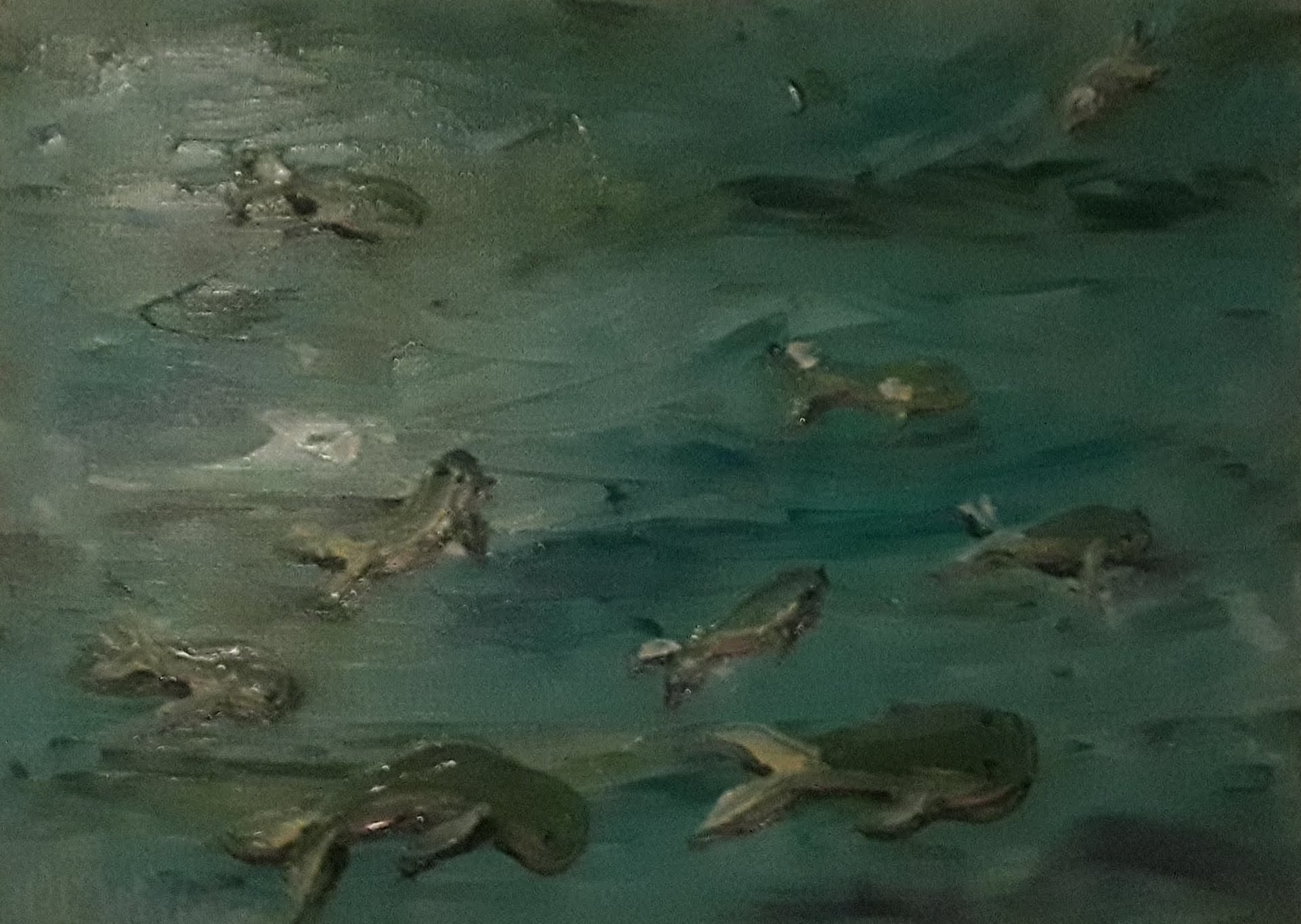 She sings …, an acylic of whales by Pacific NW artist, CC Willow, as part of her SHE Project.