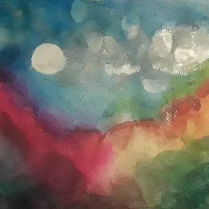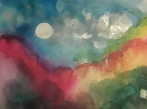 She pulls on the tides … an alcohol ink nightscape by CC Willow, as part of her SHE Project.