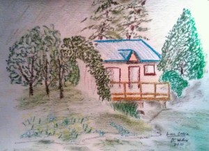 Cabin at Link Creek by Pacific NW artist CC Willow