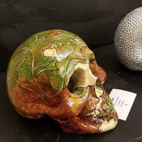 Fallen, acrylic on plaster skull by Pacific NW artist CC Willow