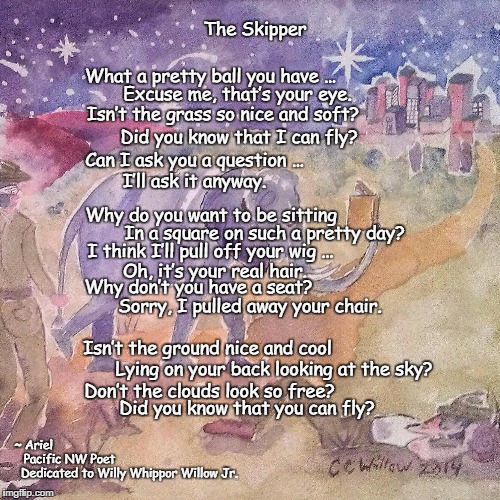 I identify myself as a Pacific Northwest poet. I have been writing poetry since 1976- and yes - I have been using the pen-name Ariel all this time! I can often be found writing in the Willamette Valley, in Pacific forests or along the Coastlines on Oregon.