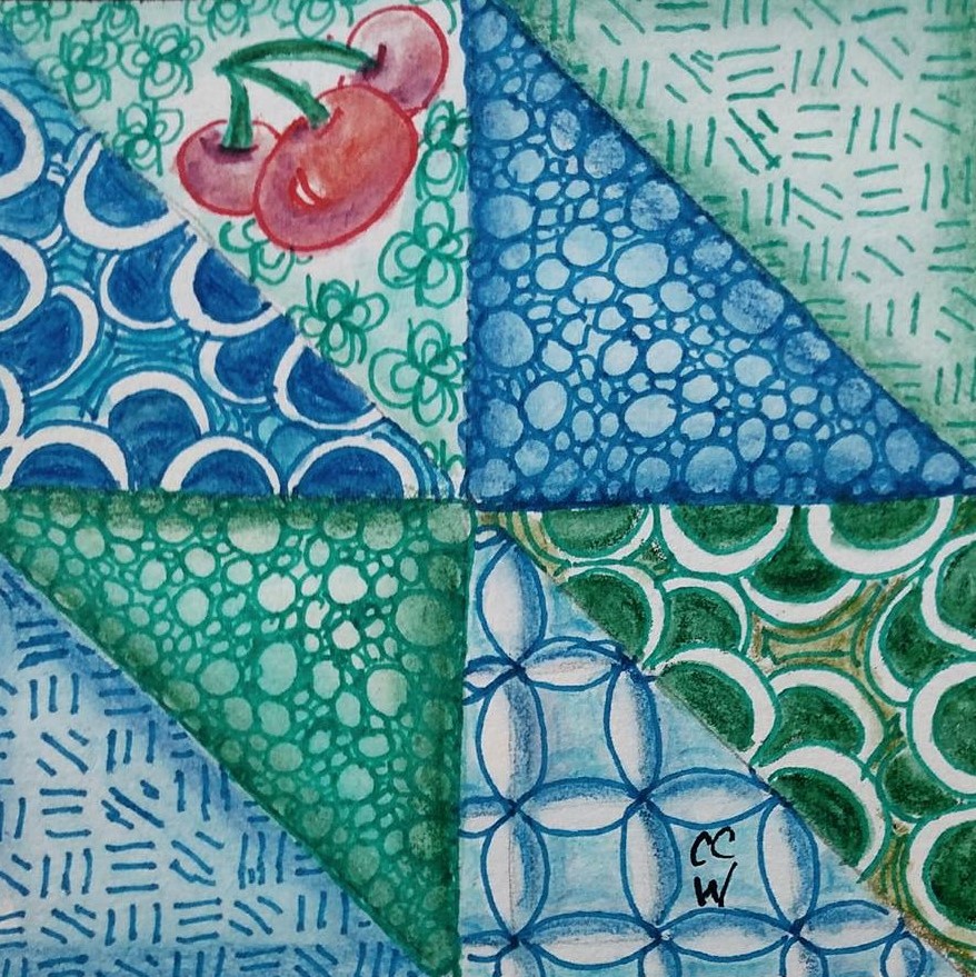 20160627 Zentangle 185 pigma ink watercolor on cotton tile WB cropped